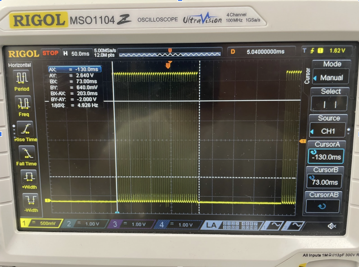 To confirm that the duration of each note is right, I performed tests by looking at the oscilloscope trace for a note of known duration.