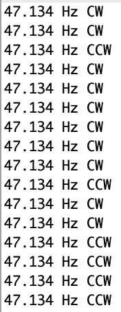 Note, because I am using only one pin, this frequency will represent double the max RPM readable using the motor, as only one pin is toggling instead of two. With two pins, we get twice the interrupts, and we will start getting issues at half the rate. Thus, for this testing, the printed frequency is DOUBLE what we could achieve with a motor.