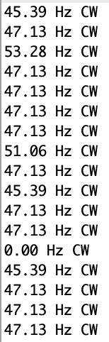 Figure 1 shows a steady output of 47.13 Hz. There is no aliasing present. This is the maximum frequnecy that I could get a stable reading at, above this some slight aliasing occured, with the effect getting worse as I increased frequency.