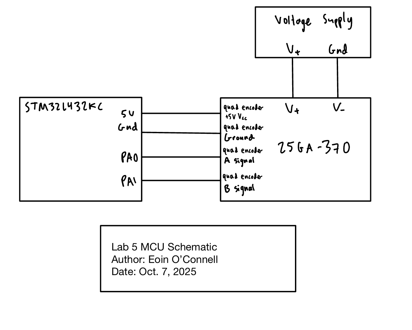 This is the second Lab in E155 working with microcontrollers. The goal of this lab is to get comfortable with interrupts through designing an algorithm to sense quadrature encoder pulses and convert these into motor velocity and direction.